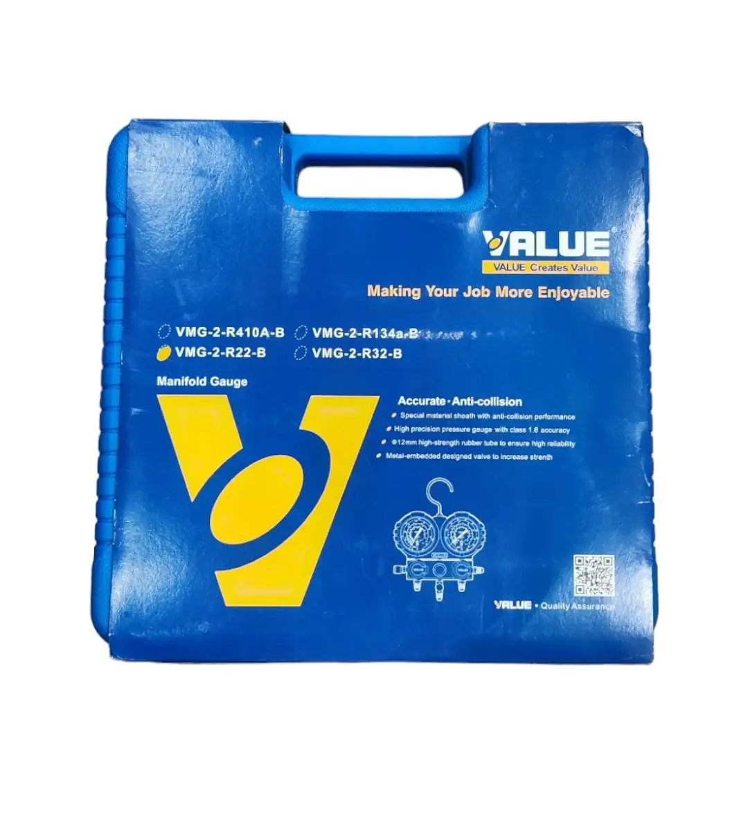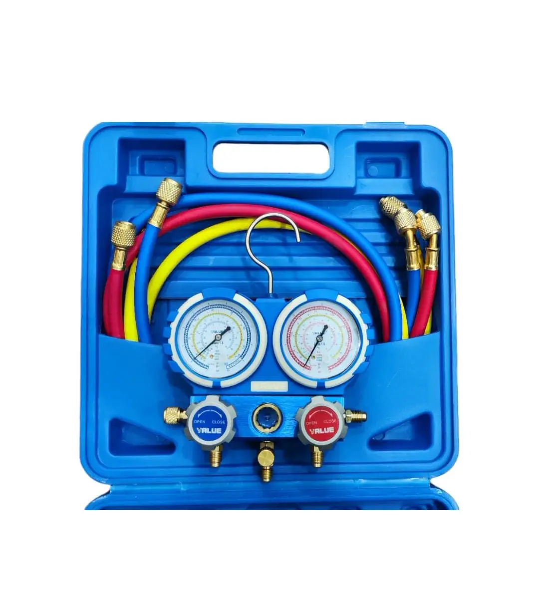 طقم ساعة فريون ماركة فاليو هو مجموعة من الأدوات المتخصصة المستخدمة في صيانة وإصلاح أنظمة التكييف والتبريد. يتضمن الطقم عادة مجموعة من الساعات والموصلات والأنابيب التي تسمح للفنيين بقياس الضغط وكمية الفريون في النظام، بالإضافة إلى شحن النظام بالفريون الجديد عند الحاجة.